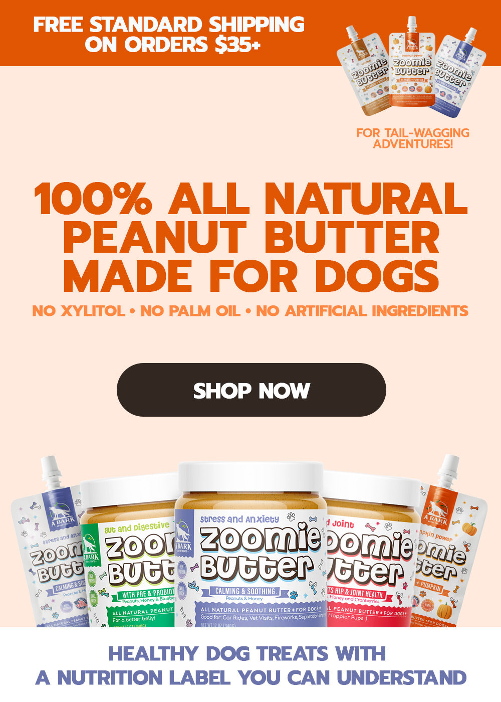 "Dogs like peanut butter. It’s a fact. But Zoomie Butter is CLEAN and perfect for our Bentley! If you’re looking for an all natural treat for your dog - this one is a must! She can’t wait for the next bite!!"